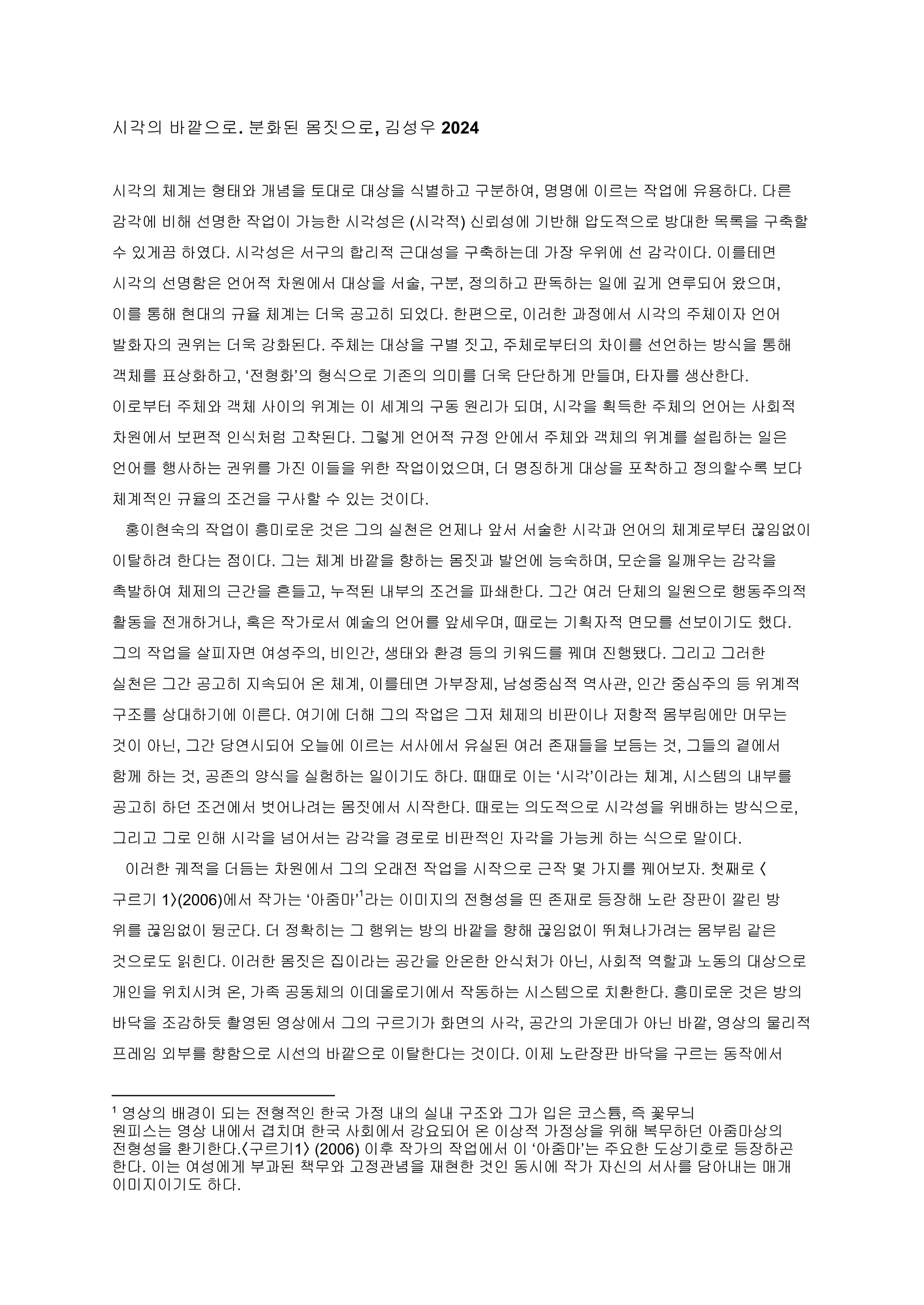 시각의 바깥으로. 분화된 몸짓으로, 김성우 2024