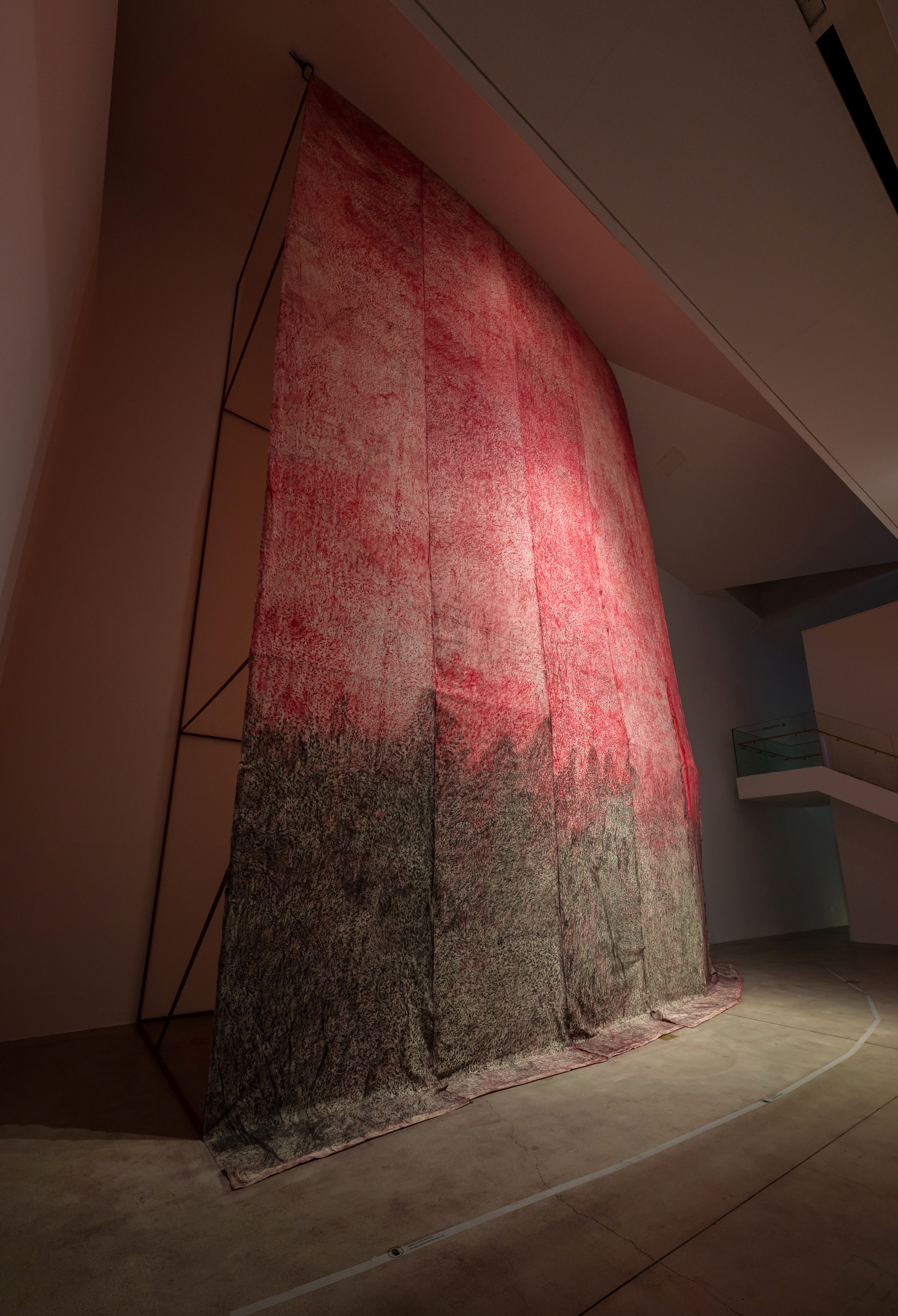 지금 당신이 만지는 것 - 인수봉 2024, 설치, 광목천에 크레용 프로타주, 1100x155cm(6)+ 사운드설치(10분) 사진-김진솔